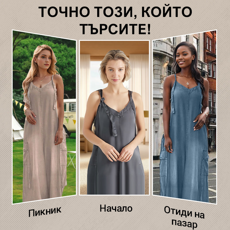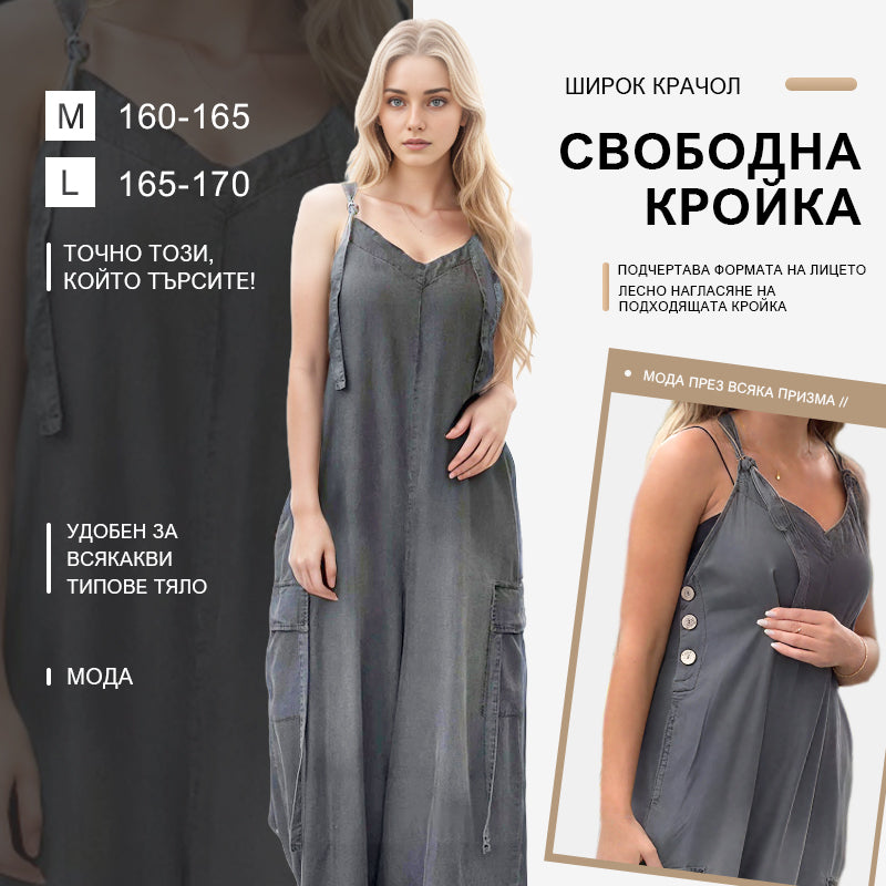Дамски свободен гащеризон с широки крачоли и джобове