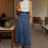Дамска дънкова макси пола с висока талия и А-образен крой
